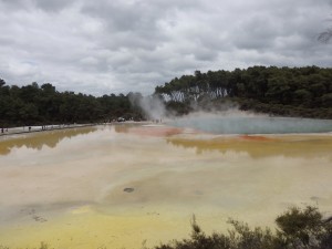 Gisteren waren we in Wai-o-tapu (sacred waters) een enorm vulkanisch landschap/park.( sorry hoor, ik ontkom niet aan superlatieven in dit land)