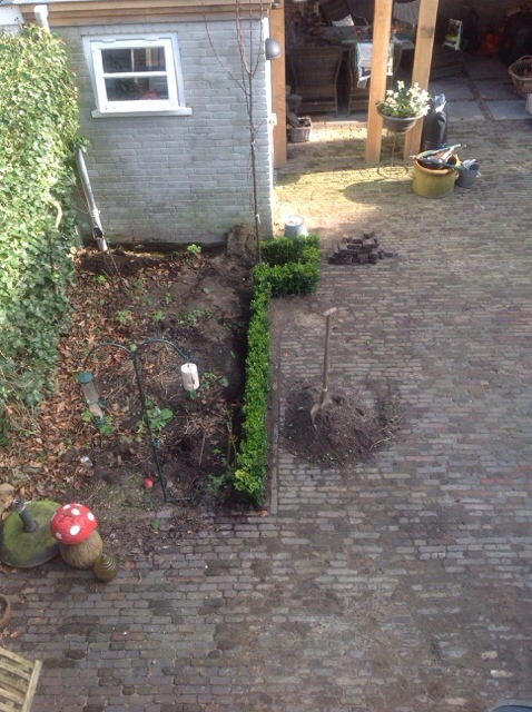 Een dag afwezig, Frans en P deden hun best en zetten er een heus haagje neer ipv een blok! De hoogstam Elstar staat kaarsrecht.